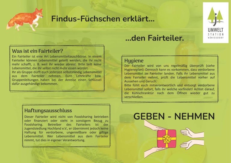 Ein besonderes Projekt auf unserem Zeltplatzgelände ist der Fairteiler – eine Art Lebenmitteltauschbörse, in der überschüssige, noch genießbare Lebensmittel geteilt werden können, die nicht mehr benötigt werden.